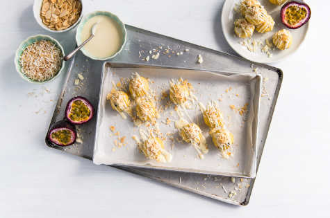 - Scoop the passionfruit chocolate onto a baking paper lined tray. Use clean hands to roll into balls. Refrigerate the formed truffles for 1 hour.