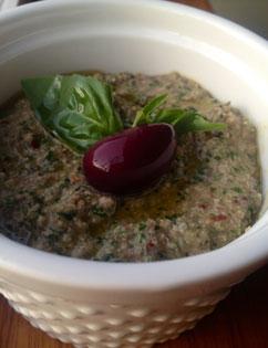 Place olives, garlic, chilli and lemon juice in food processor and blend until smooth. Add basil, macadamia nuts and parmesan and pulse briefly. Drizzle in half the oil, pulse again, repeat.